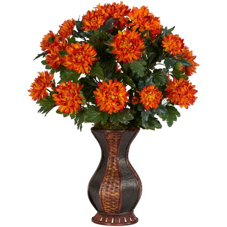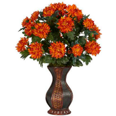 Nearly Natural 6664 Spider Mum with Urn Decorative Silk Plant, Orange