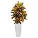 Nearly Natural 51in. Croton Artificial White Tower Planter (Real Touch) Silk Plants, Orange
