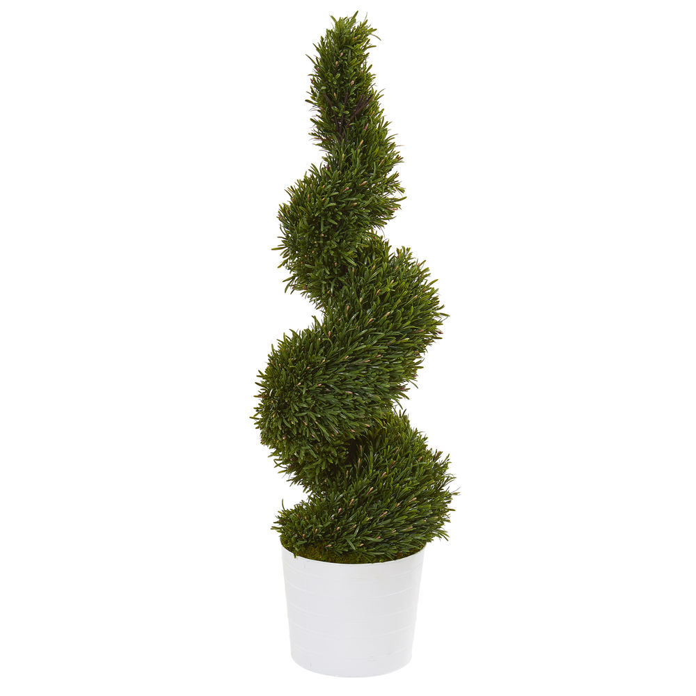 - Transform indoor and outdoor spaces with this artificial topiary tree Composed of rosemary greenery in a spiraling motif and manicured to look like the real deal. Stands 50in. High from a white bucket.