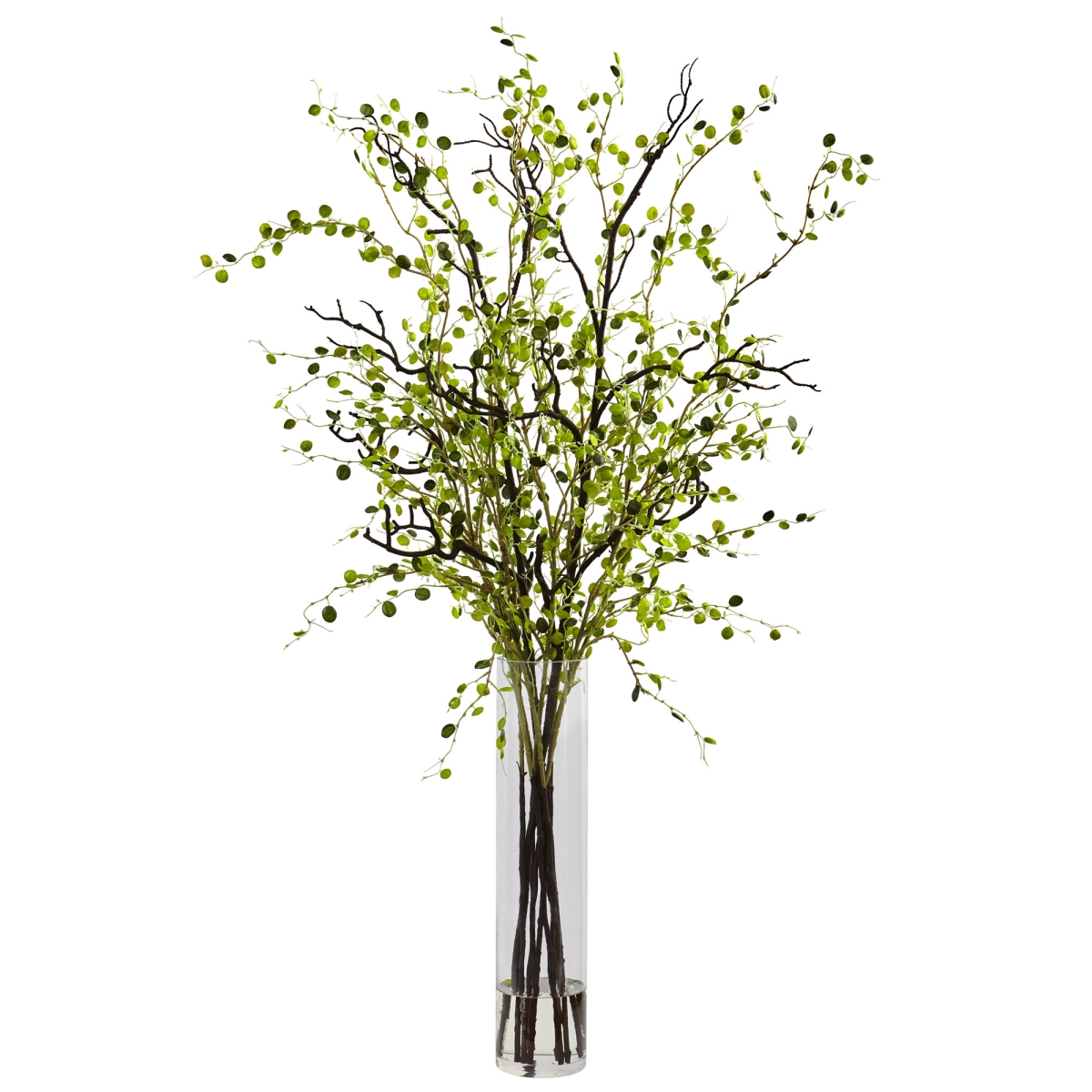 Nearly Natural 1433 Night Willow Arrangement in Glass Vase,White,50.5'' x 7'' x 7''
