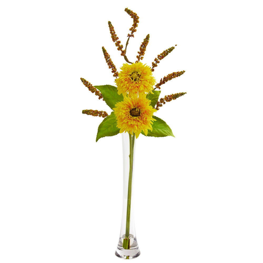 Nearly Natural 32in Sunflower & Berry Artificial Arrangement