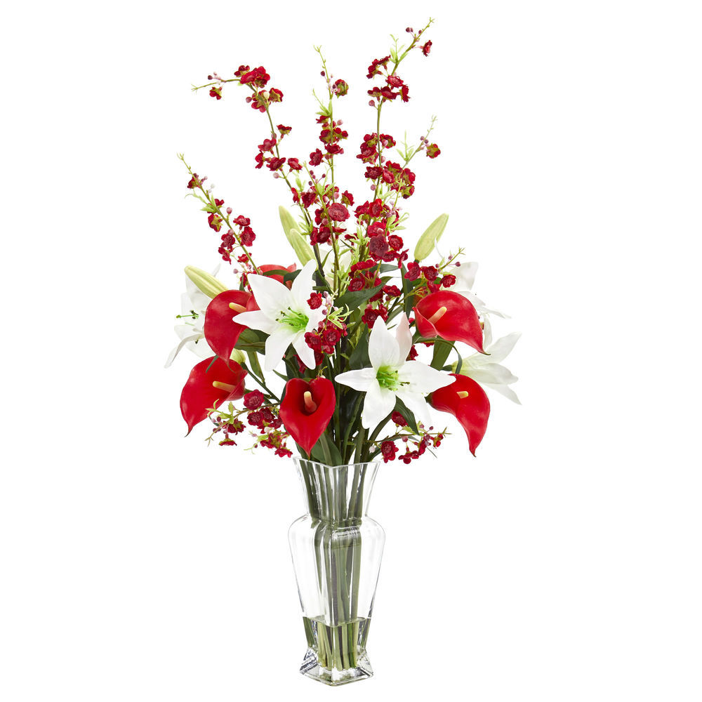 Nearly Natural 29in Calla, Lily and Cherry Blossom Artificial Arrangement