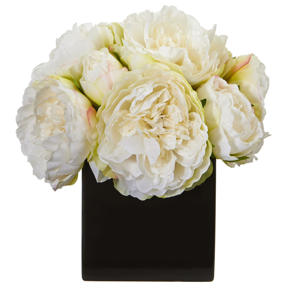 Nearly Natural 9in Peony Artificial Arrangement in Black Vase