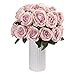 Nearly Natural Rose Artificial White Vase Silk Arrangements, Pink