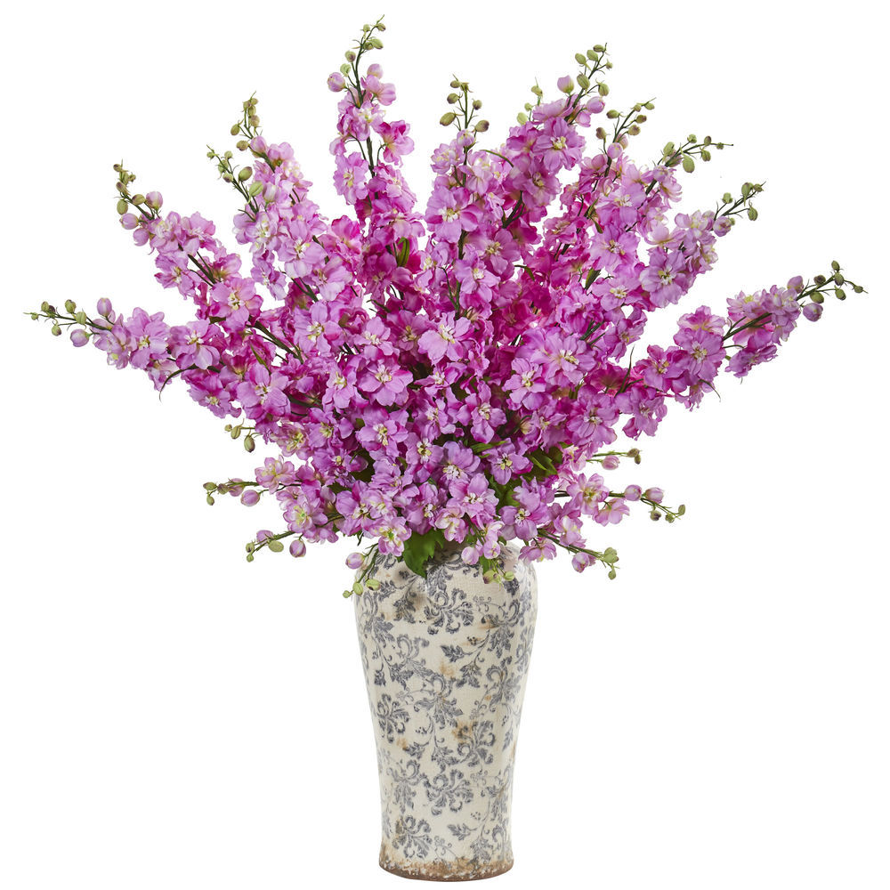 Nearly Natural 38in Delphinium Artificial Arrangement in Decorative Vase
