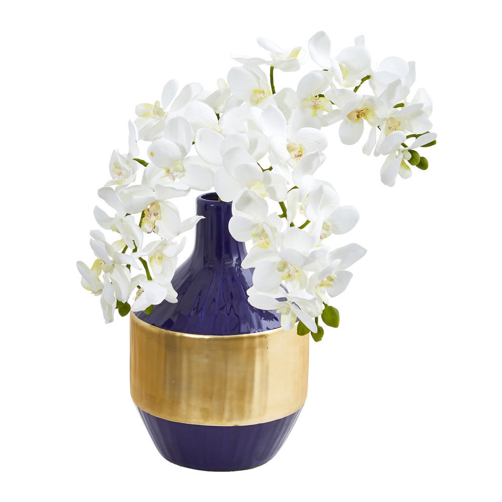 Nearly Natural 13in Phalaenopsis Orchid Artificial in Designer Vase