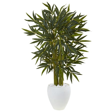 Nearly Natural 4.5’ Bamboo Artificial Tree in White Oval Planter, Green