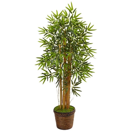 Nearly Natural 4.5ft Bamboo Tree in Coiled Rope Planter