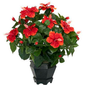 Nearly Natural 6691 Hibiscus with Black Hexagon Vase Decorative Silk Plant, Orange