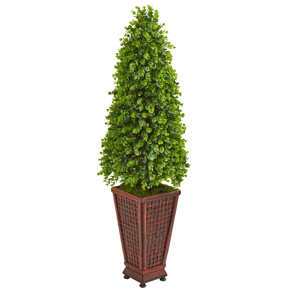 Nearly Natural 4ft Eucalyptus Cone Topiary Tree in Decorative Planter
