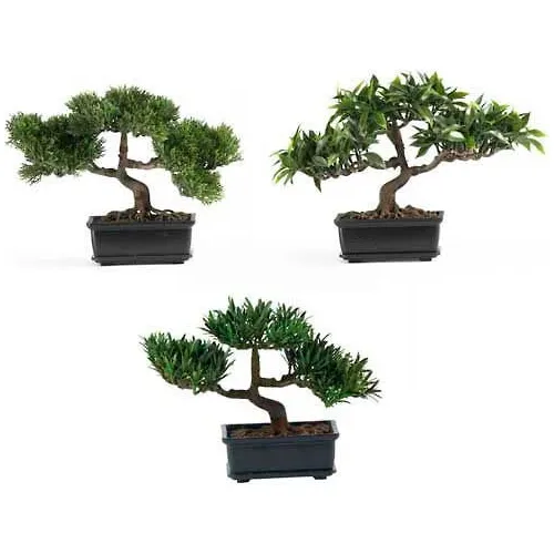 12"" Bonsai Silk Plant Collection in Green (Set of 3)