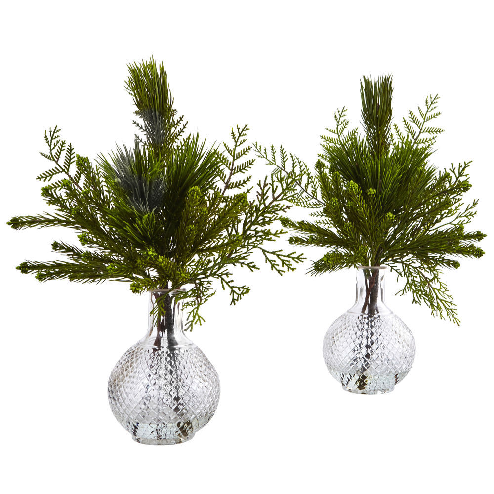 Nearly Natural 4546-S2 Mixed Pine in Glass Vase, 2 Piece