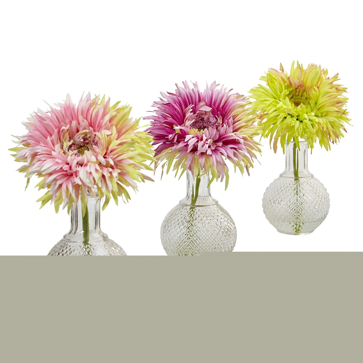 Nearly Natural 9in Daisy with Glass Vase (Set of 3)