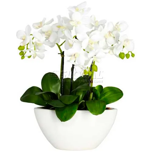 Nearly Natural - Faux Florals / Plants - 4804 - Bring the brightness of a sunny day to any room in your home with this gorgeous Triple Mini Phalaenopsis. With three distinct stems sprouting forth from a lush base of green leaves culminate in soft, bright blooms (replete with berry buds for contrast.) This “bundle of sunshine"" comes complete with a beautiful white bowl-vase planter. Makes an ideal gift.It brings the brightness of a sunny daySimple yet an elegant touchPerfect for a dining room centerpieceSpecifications:Overall Product Dimensions: 16"" H x 12"" W x 7"" D