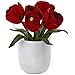 Nearly Natural 8.5in Tulips w/White Glass Vase Red