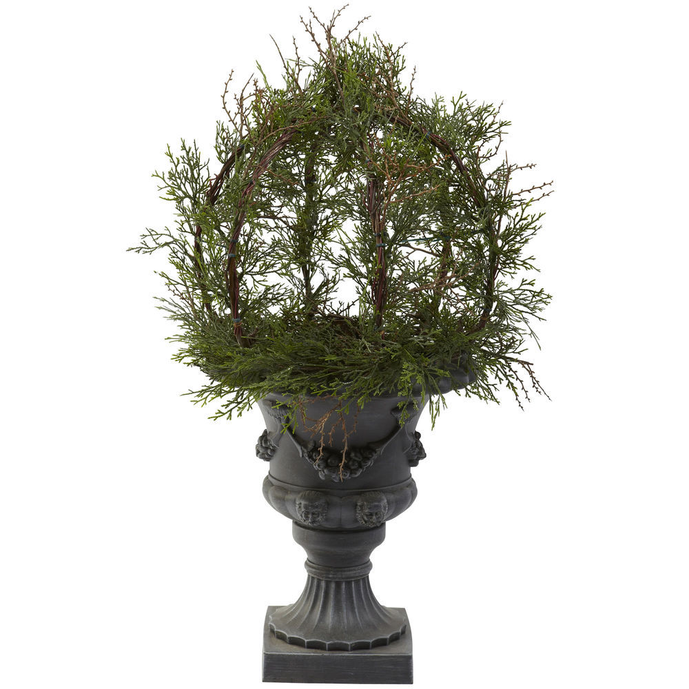 Wow that's what everyone first says when they view this incredible 30 in. Pond Cypress Ball Topiary. It really has to be seen to be believed. Standing a full 30 in. High, this Cypress sports more than 200 lush faux leaves that reach in every direction. But the real beauty is how the stems rest on the stately grey and black urn. It's simply an amazing combination that will take everyone's breath away.