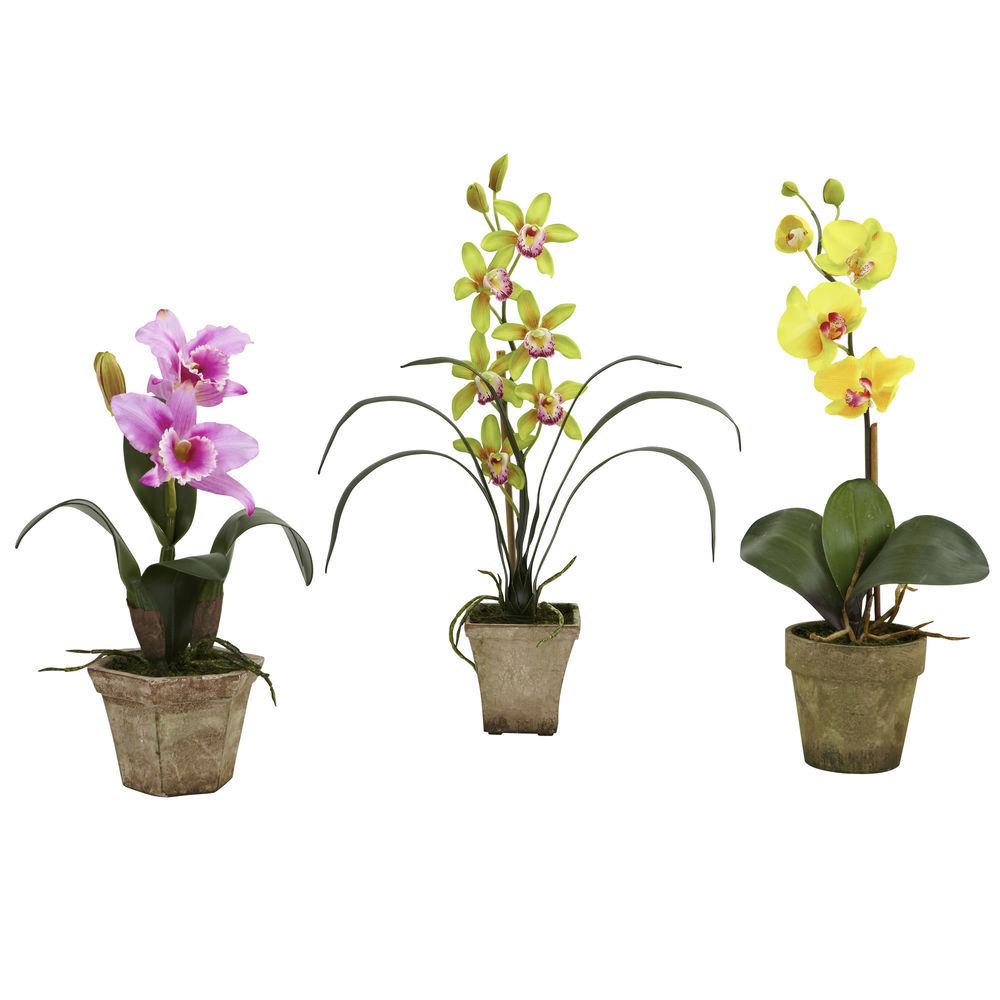 Nearly Natural Potted Orchid Mix Set of 3 Assortment2