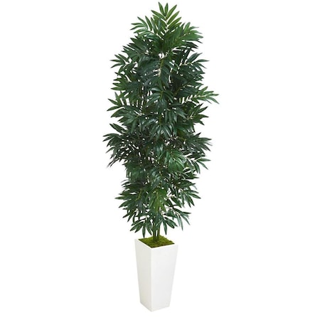 Nearly Natural 5’ Bamboo Palm White Planter Artificial Plant, Green