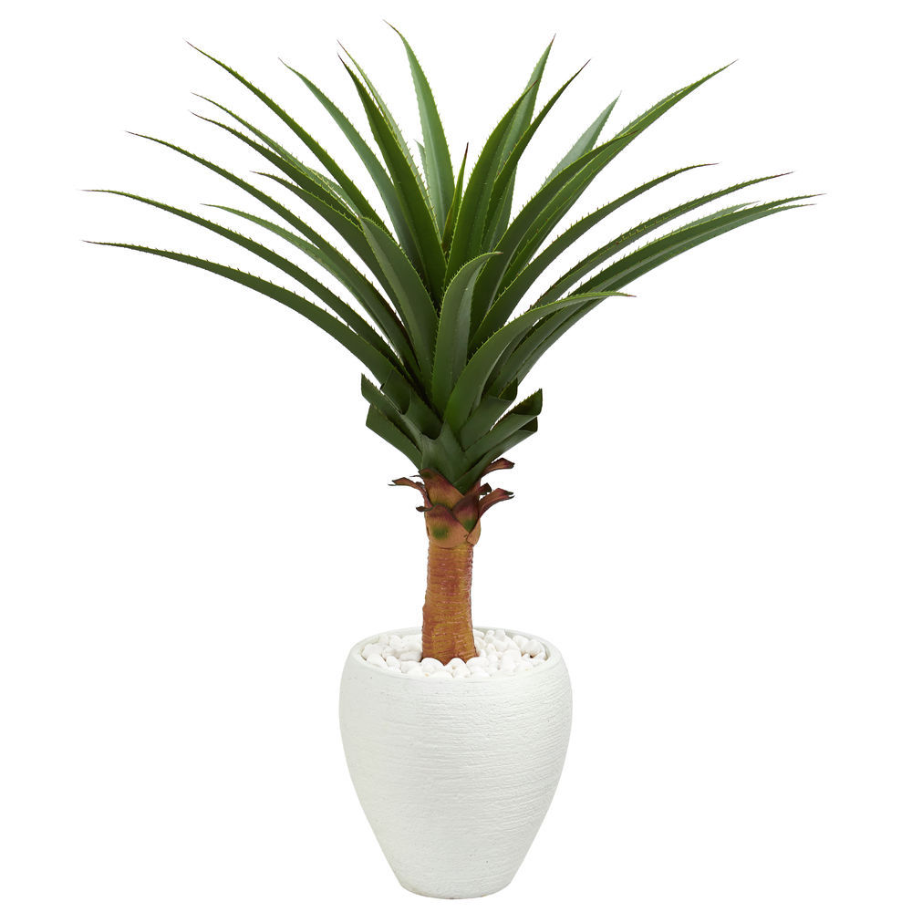 Nearly Natural 3.5ft Agave Artificial Plant in White Planter