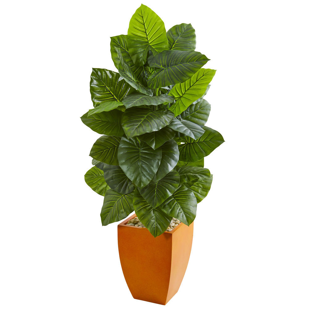 Nearly Natural 5ft Taro Artificial Plant in Orange Planter