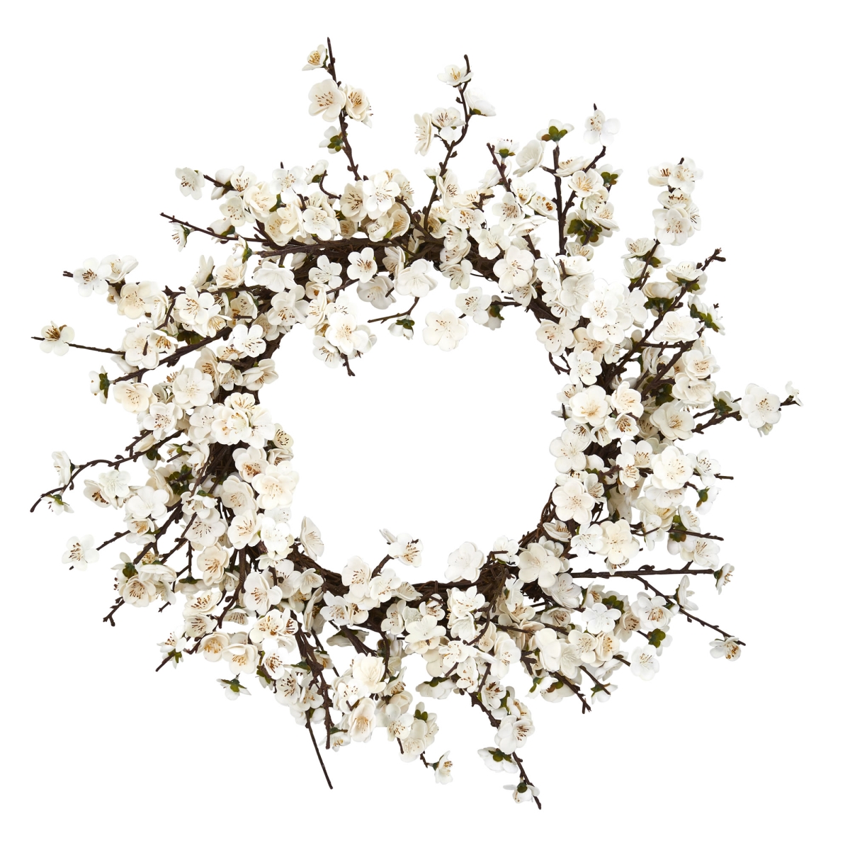 Nearly Natural 4191 24" Plum Blossom Wreath White