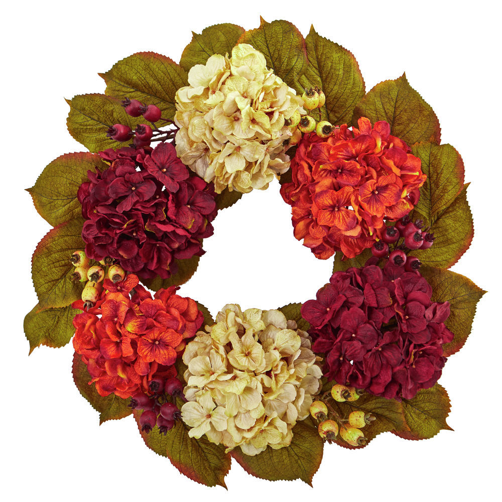 Nearly Natural 20in Hydrangea Berry Artificial Wreath