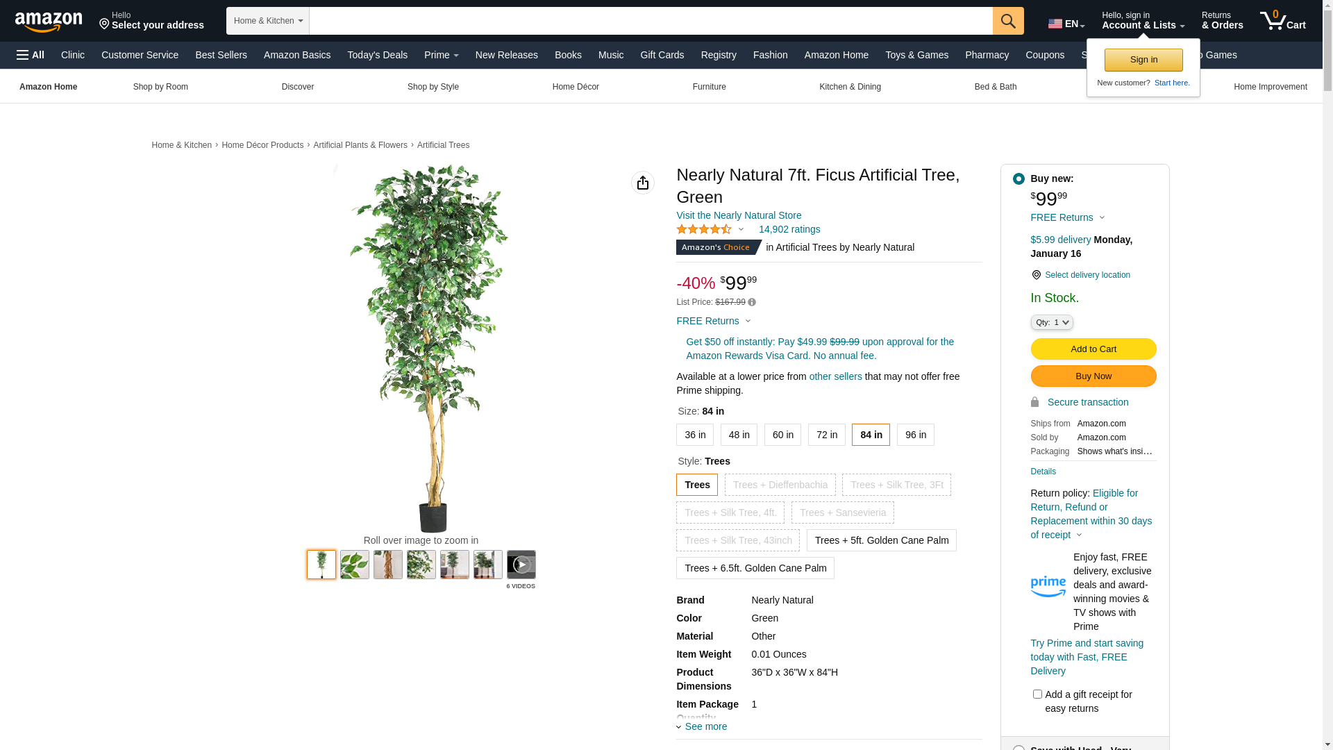Unlike the real Ficus tree, which is delicate and virtually leafless in almost any home light condition, our Ficus tree is eternally green and deep green with 1260 individual leaves on several sturdy branches. Measuring seven feet tall, this wonderful Ficus reproduction would look lovely in a home entry window or even in the office. 7 feet x 36 inches x 36 inches. Non-decorative flower pot: width: 6.5 inches high, 5.75 inches
