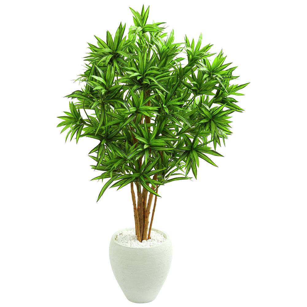 Nearly Natural 4.5 Ft. Dracaena Artificial White Planter Silk Trees Green
