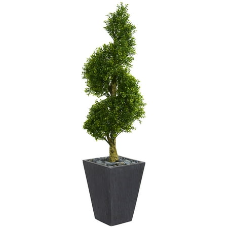 Nearly Natural 5ft. Boxwood Spiral Topiary Artificial Tree in Slate Planter UV Resistant (Indoor/Outdoor)