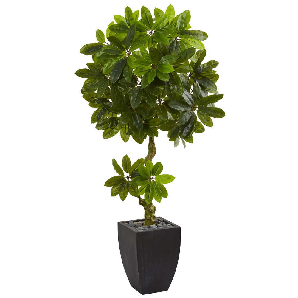 Nearly Natural Schefflera Artificial Tree in Black Wash Planter, 5.5'