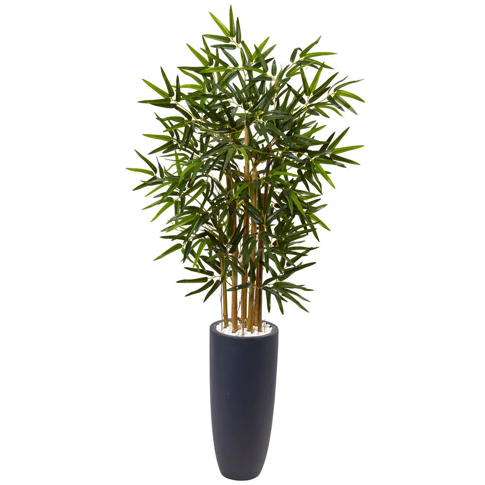 Nearly Natural 4ft Bamboo Tree in Gray Cylinder Planter