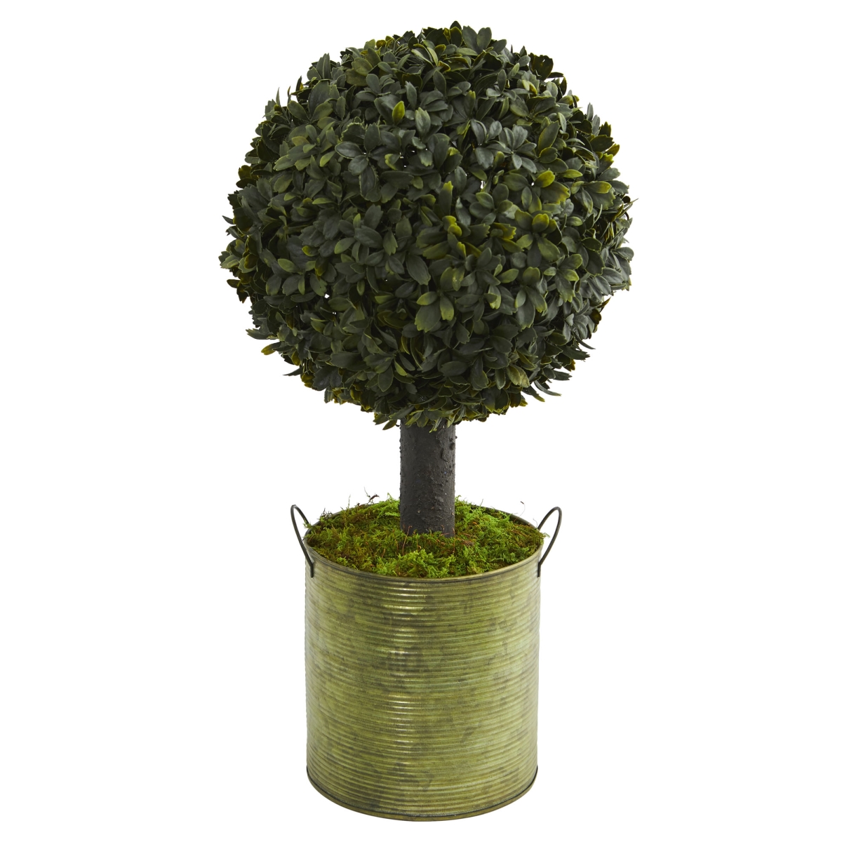 Nearly Natural Boxwood Ball Topiary Tree in Green Tin (Indoor/Outdoor)