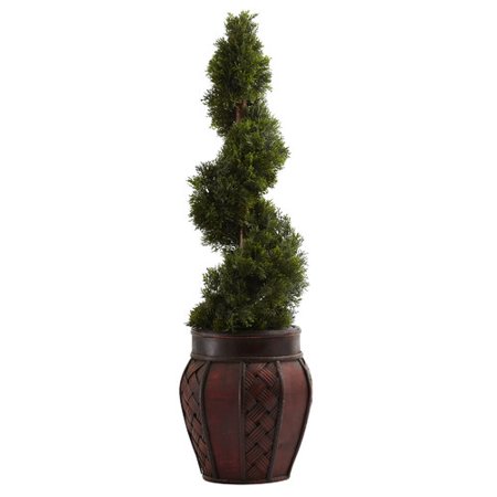 Nearly Natural Cedar Spiral with Decorative Planter, Green