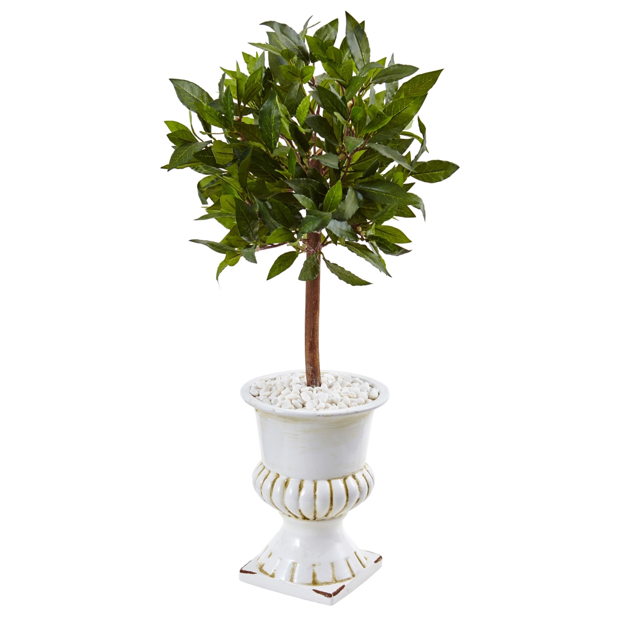 Nearly Natural 5995 2.5 ft. Sweet Bay Mini Topiary Tree in White Urn