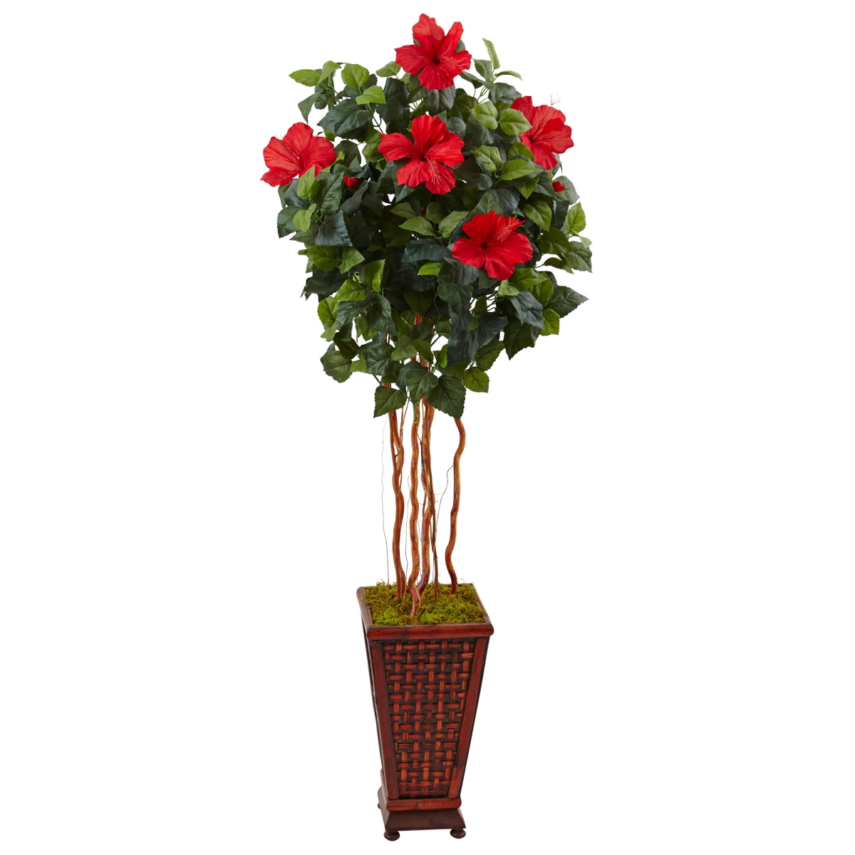 Nearly Natural 5ft. Hibiscus Artificial Tree in Decorated Wooden Planter