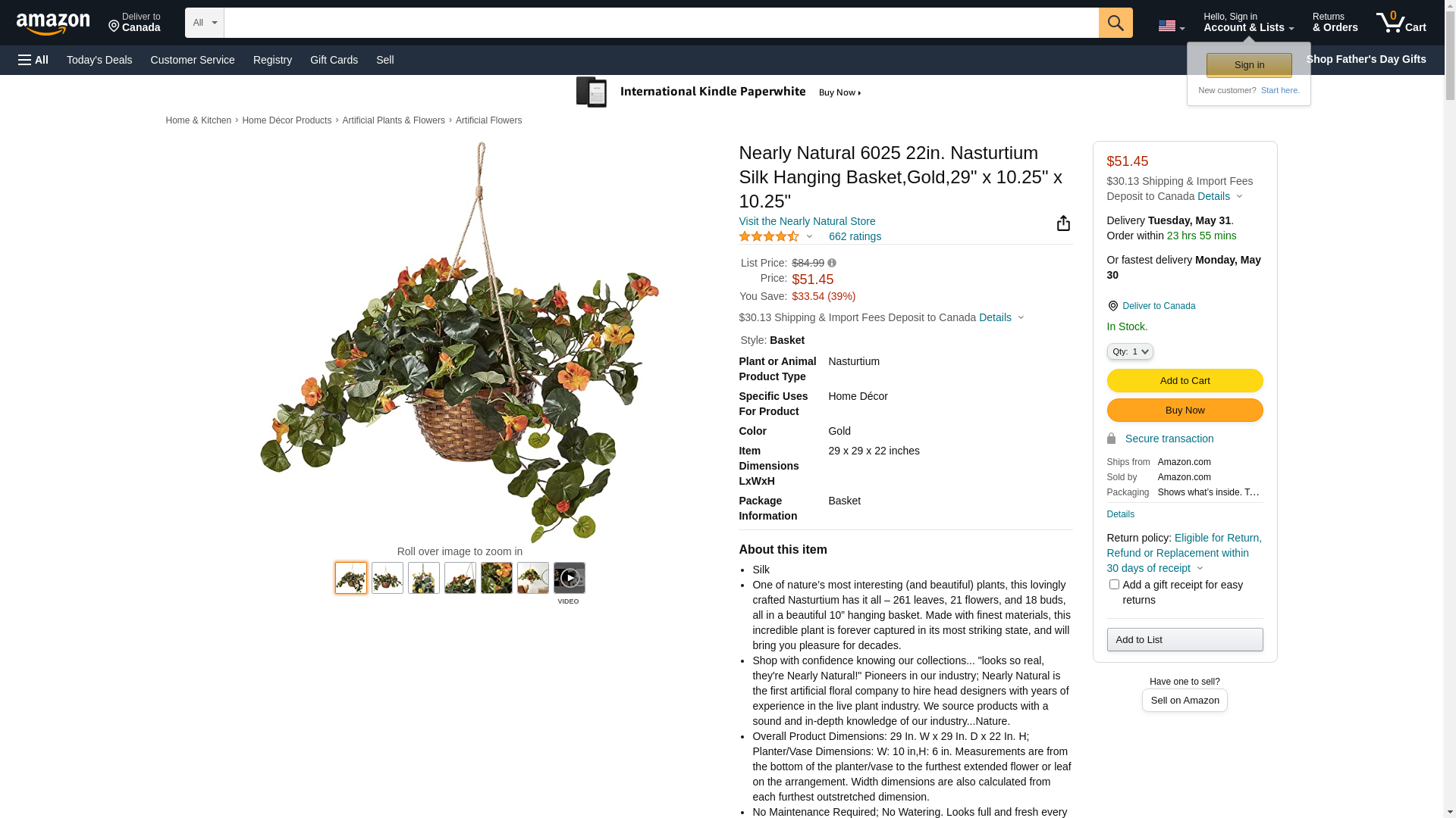 Nearly Natural Nasturtium Hanging Silk Plant