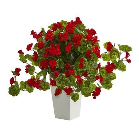 Nearly Natural 6367-RD Geranium Artificial Plant in White Tower Planter Red