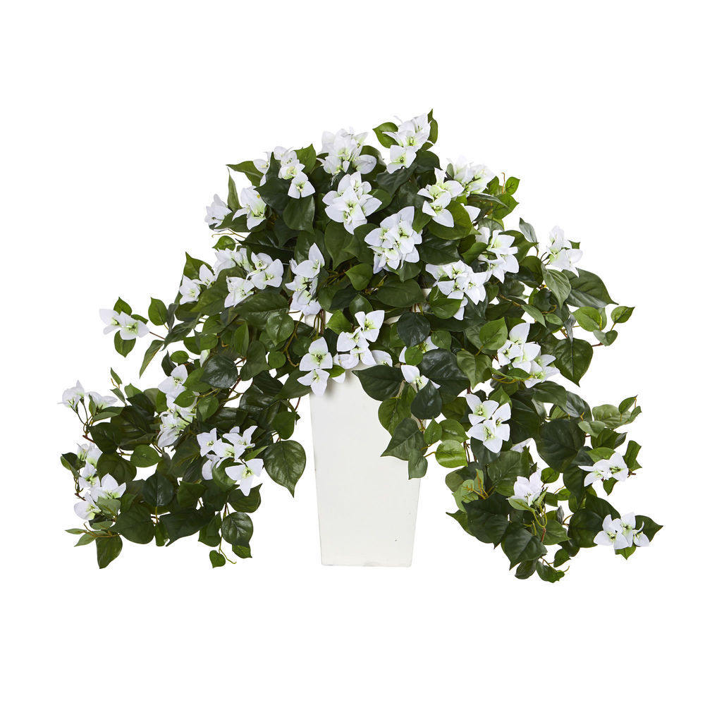 Nearly Natural 23in Bougainvillea Plant in White Tower Planter