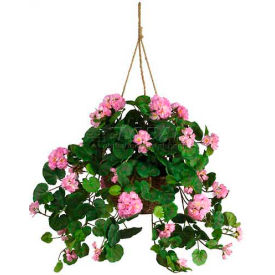 Nearly Natural 6609-PK 24in. Geranium Hanging Basket Silk Plant,Pink