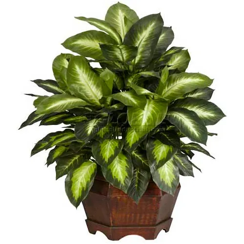 - HOME DECOR ACCENT: A beautiful lifelike plant perfect to accent any room or space for year-round greenery. Hugging the ground at 24 inches high, the Golden Dieffenbachia with Large Hexagon Base is a delightful collection of color variation. Notice the dark emerald hues mixed with lighter colors to create a rich tapestry of patterns as they spread out from the center. Just awesome (we can’t help it – that’s the word that springs to mind!) Arranged in a large hexagon pot, this evergreen, never-worry arrangement is sure to adorn any living area with a touch of nature’s beauty.