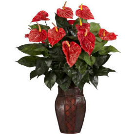 Nearly Natural 6666 Anthurium with Vase Decorative Silk Plant, Red