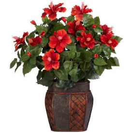 Nearly Natural 6667 Hibiscus with Vase Decorative Silk Plant, Red 30" x 9" x 7.5"