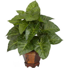 Nearly Natural 6669 Taro with Vase Decorative Silk Plant, Green 17.5" x 10.125" x 10.125"