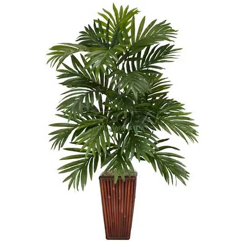 Experience the lush greenness of Madagascar with this Areca Palm and Bamboo vase. With full leaves reaching out into every direction (as if trying to spread its beauty far and wide), you?ll find it easy to imagine you?re in your own tropic paradise, no matter your location. Set in a tall rich brown bamboo vase, this Areca Palm brings a bit of island relaxation to any environment.