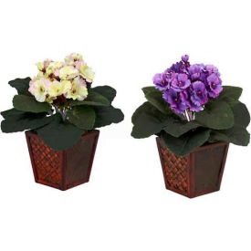 Nearly Natural - Faux Florals / Plants - 6685S2 - Youâ€ll get twice the beauty with this eye-catching pair of supple African Violets. With a bold, lush bed of green leaves set atop a decorative wood planter, these colorful blooms bring a ray of African sunshine into any room. Place them on either side of a desk or bookcase, or split them up if you wish and brighten up two rooms at once!Get twice the beauty with this pairBold color atop lush green leavesBring a ray of African sunshine into any roomSpecifications:Overall Product Dimensions: 10"" H x 9"" W x 8"" D
