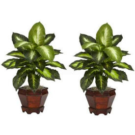 Dieffenbachia w/Wood Vase Silk Plant (Set of 2)