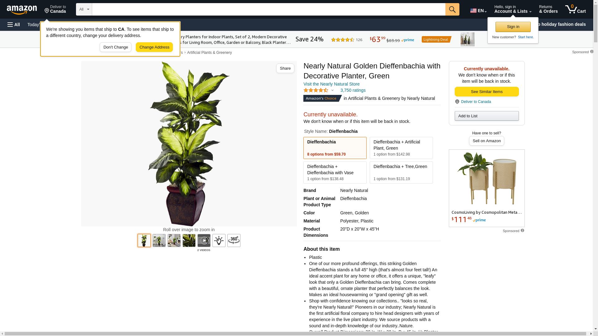 - HOME DECOR ACCENT: A beautiful lifelike plant perfect to accent any room or space for year-round greenery. One of our more profound offerings, this striking Golden Dieffenbachia stands a full 45" high (that's almost four feet tall!) An ideal accent plant for any home or office, it offers a unique, "leafy" look that only a Golden Dieffenbachia can bring. Comes complete with a beautiful, ornate planter that perfectly balances the look. Makes an ideal housewarming or "grand opening" gift as well.