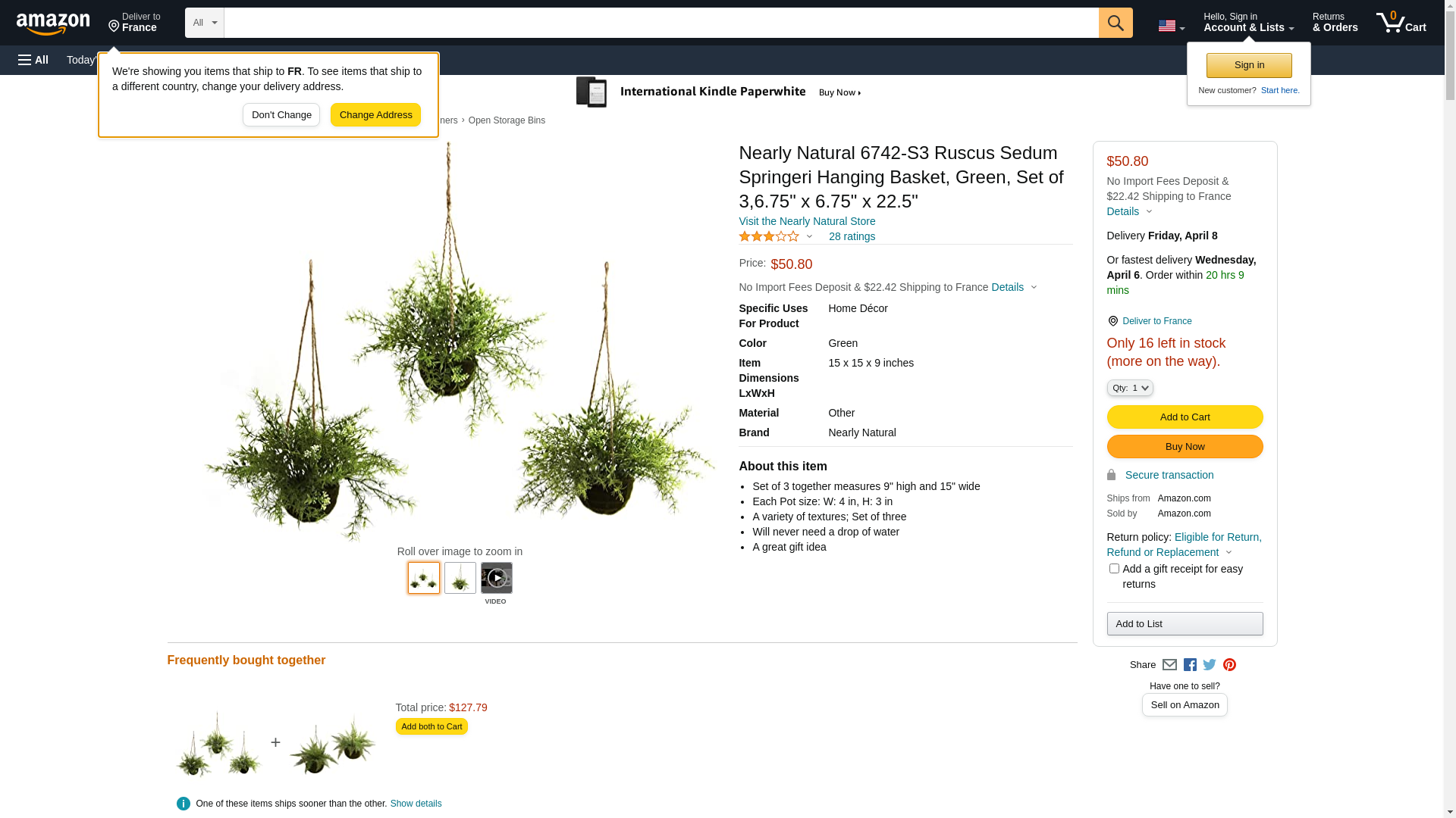 Nearly Natural Ruscus, Sedum and Springeri Hanging Basket Set of 3