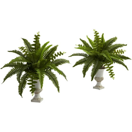 Nearly Natural 6790-S2 Boston Fern with Urn (Set of 2),Green