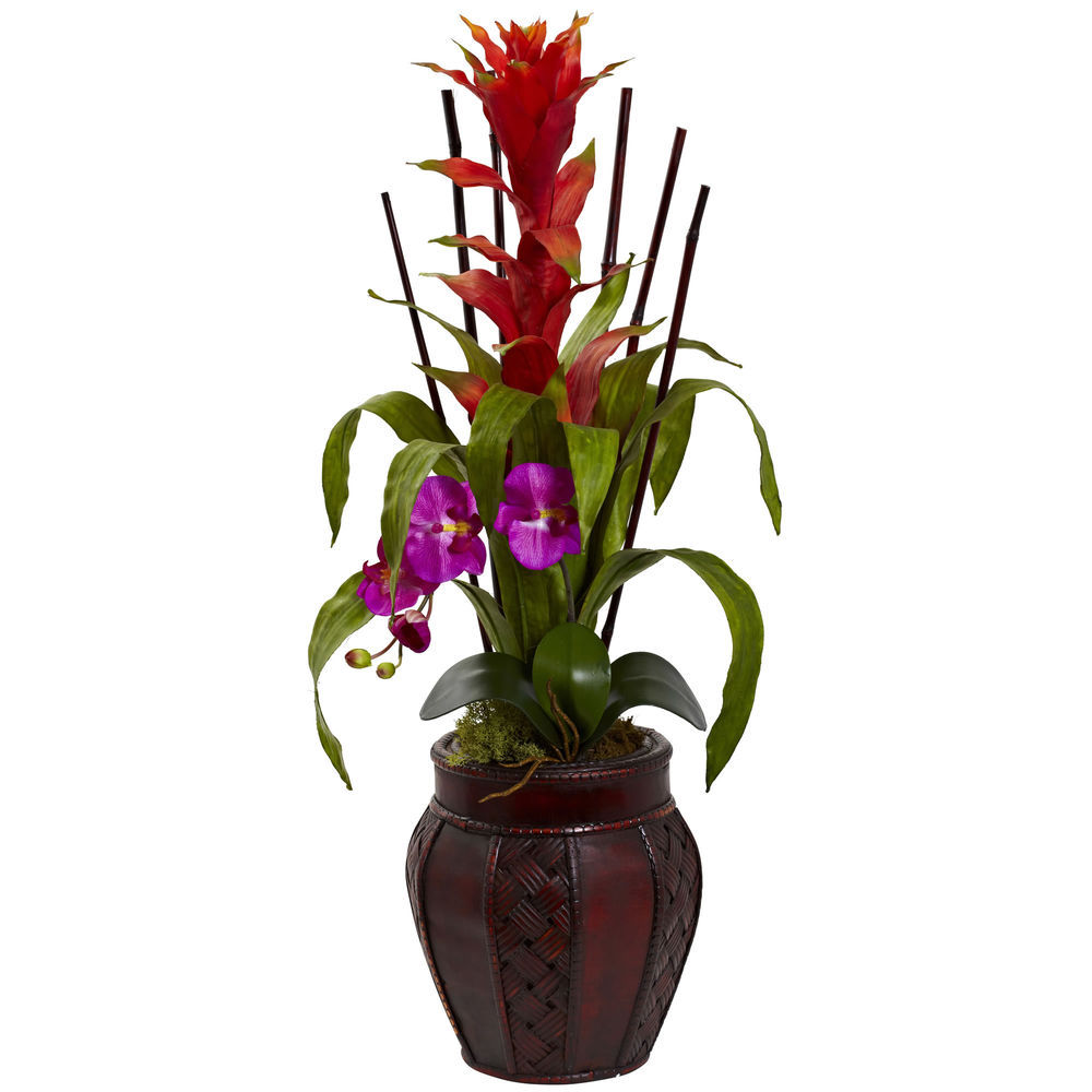 Nearly Natural Bromedliad & Combo with Planter, Orchid